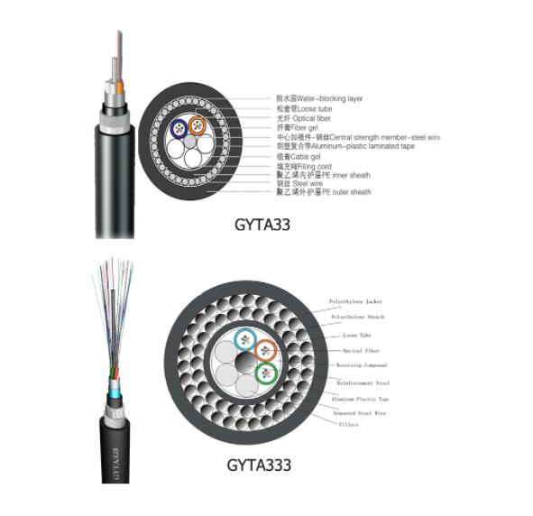 2 6 8 12 24 36 48 72 96 144 Core Armored GYTA333 Underwater Fiber Optic Cable